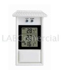 Indoor or outdoor thermometer with digital maximum and minimum temperature measurement. Features a display with clear, easy-to-read numerals in a plastic casing and ornamented with a canopy
