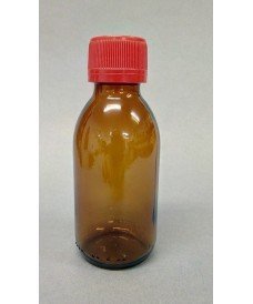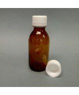 30 ml amber glass sirop bottle and 28 mm screw plastic cap with tamper evident seal.