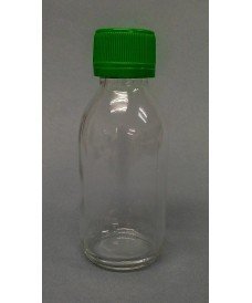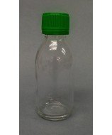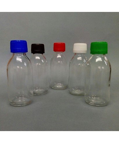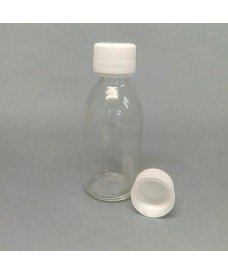 125 ml clear glass bottle and 28 mm screw plastic cap with tamper evident seal.