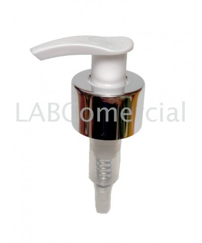 Dispenser pump in colour white and silver with 28 mm screwed for our bottles