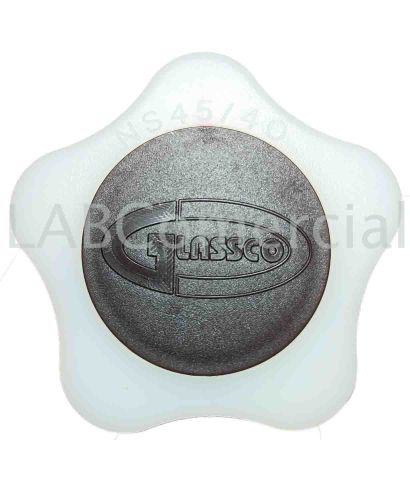 Tapones de plástico para recipientes de laboratorio con boca esmerilada normalizada como son frascos, botellas, buretas y matraces entre otros materiales volumétrico.