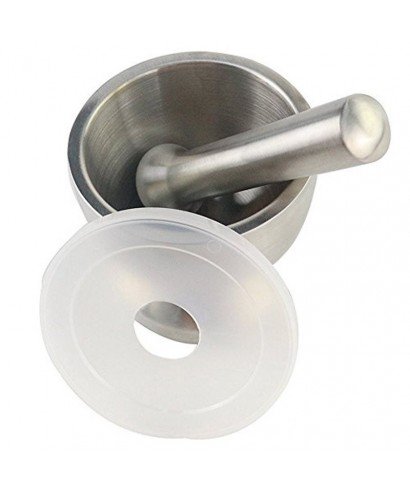 It is supplied with a perforated plastic lid to facilitate grinding without the risk of splashing or loss of working material through ejection.