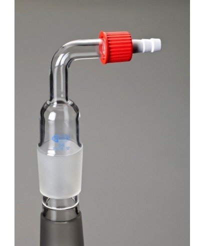 Borosilicate glass connection, standard male ground joint 14/23, 90° elbow and with outlet.