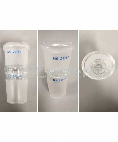 Adapter made of borosilicate glass 3.3 with standard SJ 29/32 male/female ground joint with inner glass grid.