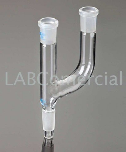 Made of borosilicate glass with a male ground joint at the base and two standard female upper joints. The distance between the two upper female ground-glass joints is 25 mm.