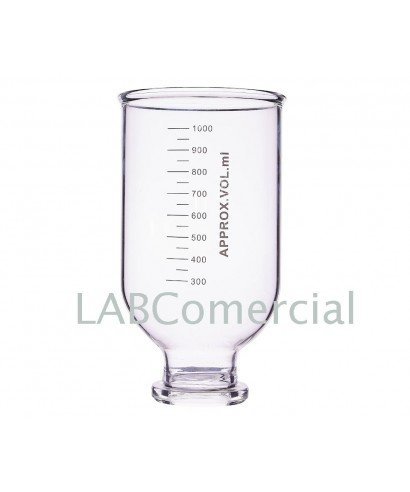 Graduated glass funnel of 1000 ml capacity to compose a filtration equipment or vacuum manifolds for membrane filters of 47 mm diameter.