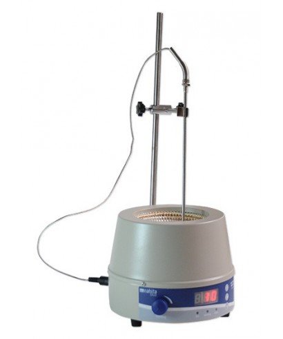 Manta calefactora con agitación magnética para matraces de 500 ml de capacidad. La regulación de la velocidad es analógica y la de la temperatura es digital.