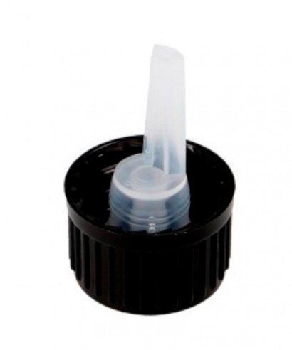 Tapón cuentagotas vertical de polietileno con orificio de salida de 0,7 mm de diámetro: el líquido sale gota a gota. No se recomienda su uso para aceite o productos de alta densidad.