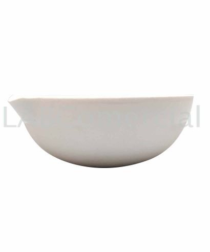 Capsule d'évaporation en porcelaine à fond rond de 75 ml de capacité, 82 mm de diamètre et 32 mm de hauteur. Il est entièrement émaillé à l'intérieur ainsi que le bord supérieur avec bec verseur et la base n'est pas émaillée.