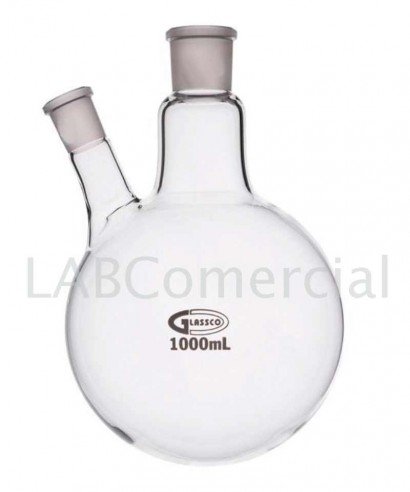 Ballon sphérique d'une capacité de 1 litre avec double embouchure NS 29/32 et 14/23 pour contenir l'eau provenant du processus de distillation des huiles essentielles. Disponible en capacité de 1 ou 2 litres.